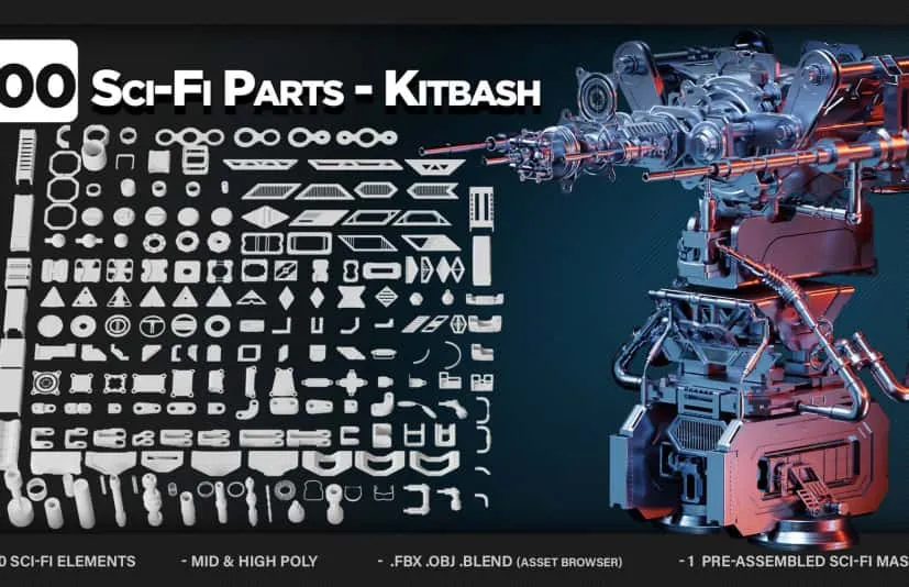 本产品包含 200 个用于 3D 套件的科幻元素。