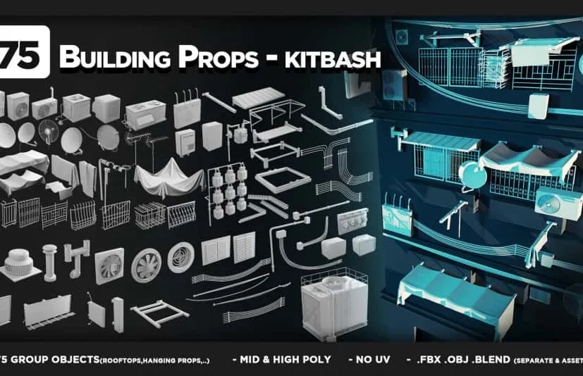该产品包括 +75 个 3D 资源,可加快您的设计工作流程,并为您的 3D 建筑带来细节。