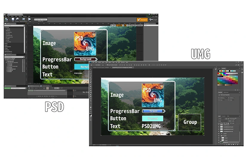 PSD2UMG 是一个将 PSD 文件导入 UnrealEngine4 并将 PSD 文件转换为 Widget 蓝图的插件。