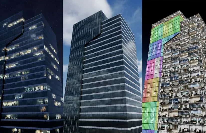 用于创建逼真的商业办公楼窗材料。只需一个建筑物窗户遮罩,它就可以根据世界对齐纹理自动生成整个建筑物的视差建筑窗效果。它与在虚幻引擎中构建UV相匹配,无需在DDC软件中单独创建UV。自动随机化室内场景的布置和夜间照明的分布,快速实现广域的夜间建筑场景。它提供了一系列参数设置,用于快速调整窗口颜色、照明亮度和其他效果。