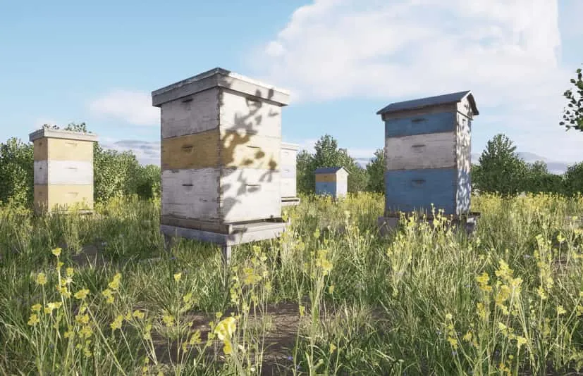 使用现代 AAA 艺术创作管道创建的预组装蜂箱和单独模块包。