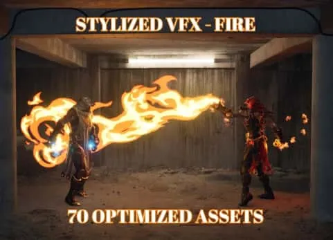 70 个独特的风格化火元素视觉特效。所有完全优化的高质量亚紫外材质。易于使用,拖放。