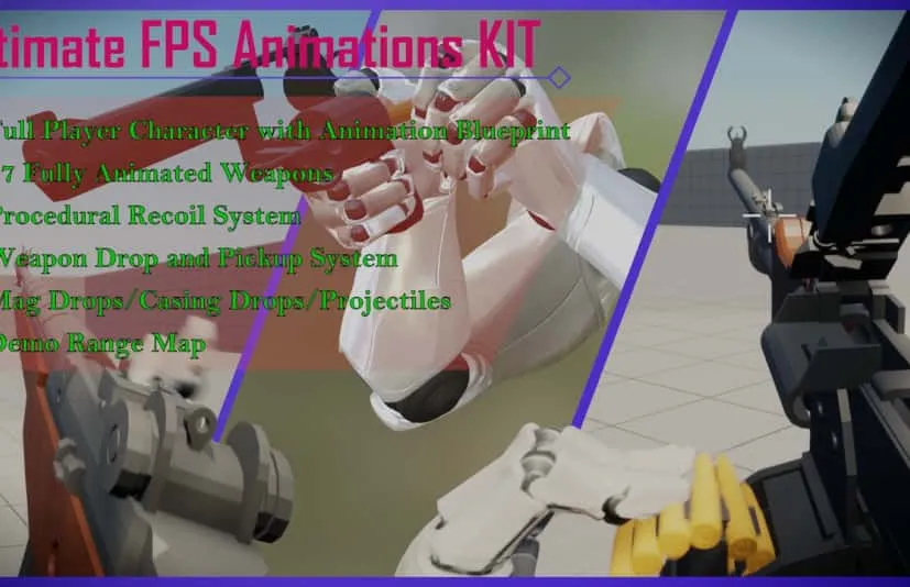 虚幻引擎项目的FPS动画包,其中包含类似于ak-47、m16、winchetser等武器!