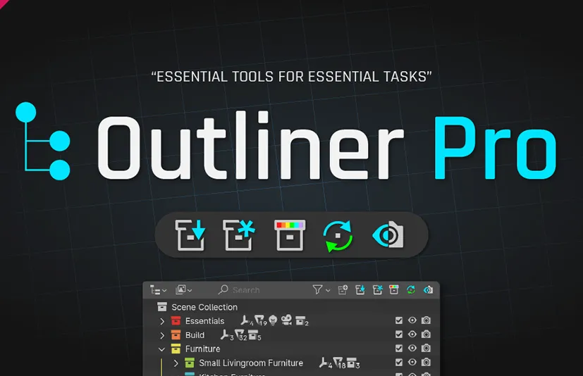 点击查看官方介绍Outliner Pro 是 Blender Outliner 的一组工具,使管理对象和集合变得更加容易。它可以帮助您清晰地组织和可视化模型和集合。