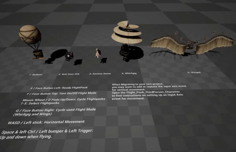 - 5 个飞行包可供飞行,包括所有动画和它们看起来不错所需的其他资产。