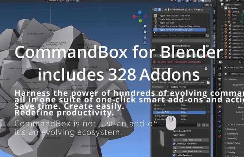 Blender 的 CommandBox:与传统插件不同,它在需要时仅动态加载必要的内部插件,然后将它们从内存中清除,从而确保极快的速度和超轻的性能。