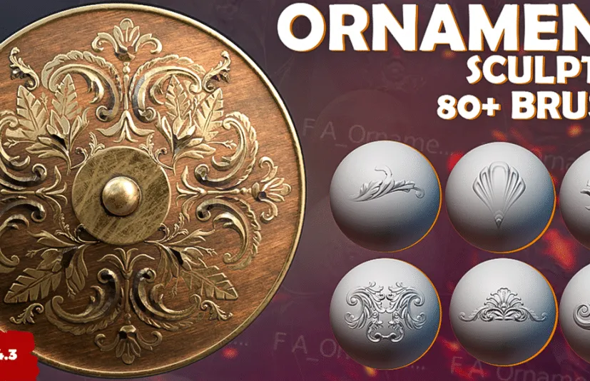 83 个画笔,用于在 Blender 3D 中雕刻装饰品。非常适合雕刻盔甲、武器、中世纪墙壁和其他表面。