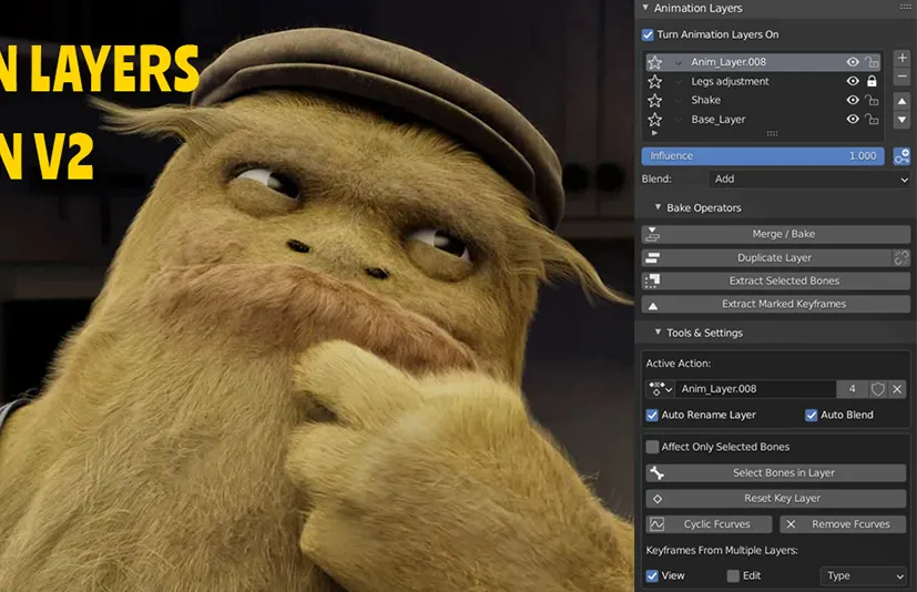 Animation Layers是一个插件,可将 NLA 编辑器的工作简化为标准动画层工作流程。您可以快速创建、选择和编辑每个图层,而无需进入 NLA 的调整模式,并且在处理任何图层时始终可以看到最终结果。
