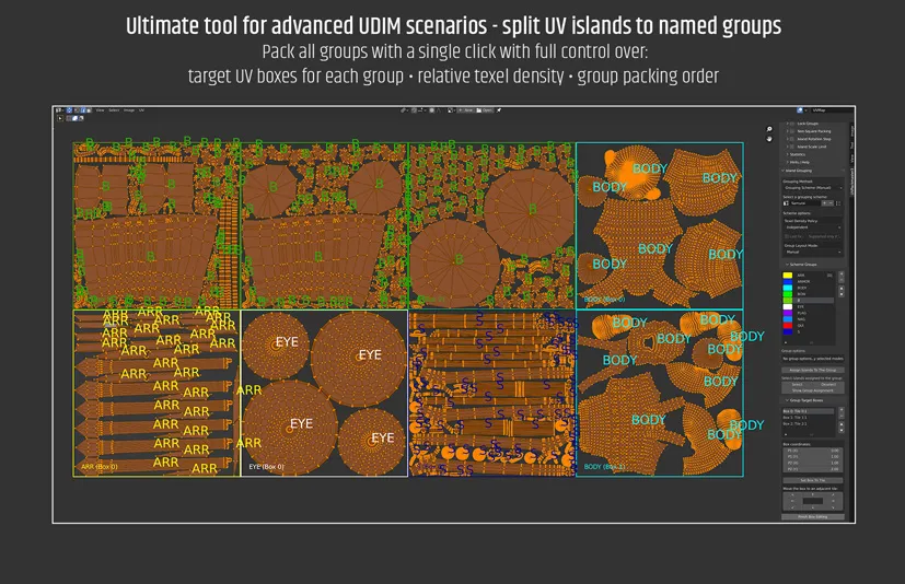 UVPackmaster是CPU上包装方面最有效的UV打包器,但它也提供了该算法的Cuda加速变体。在 GPU 上运行时,它的性能明显优于所有其他可用的打包程序。
