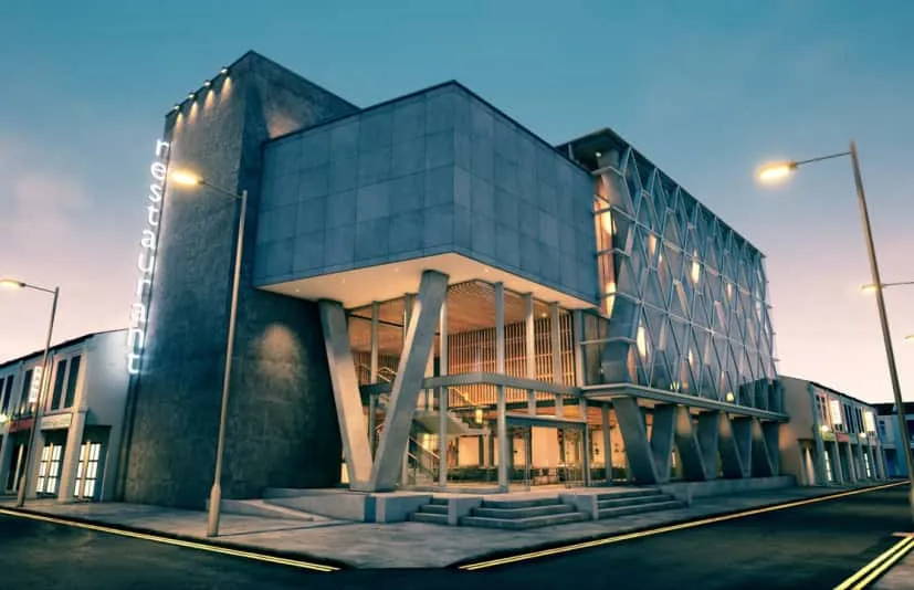 这个项目描述了一家餐厅及其建筑的夜景,由虚幻引擎创建。
