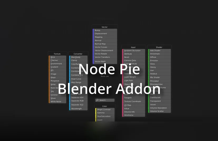 Node Pie 是一个 Blender 插件,它将通常的 blender 添加节点菜单转换为饼图菜单