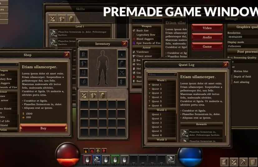 探索我们针对不同游戏风格的高质量 GUI 套件的完整集合: