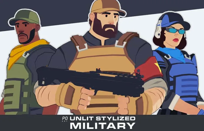 该捆绑包包含一组穿着军事装备的未点亮风格化角色。