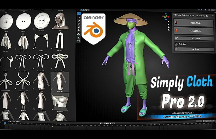 这个插件 旨在优化您的工作流程,使其成为一个非常宝贵的工具 用于在 Blender 中快速设置和测试布料对象。虽然基本的 建议了解 Blender,Simply Cloth Studio 提供 为所有技能水平的用户提供更流畅、更高效的体验。