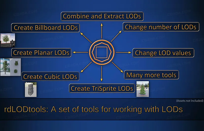 在网格上运行 rdLODtools 可以大大加快渲染速度。这些 LOD 可以填充您的城市建筑、电线杆/灯杆、树木和植物,同时还可以降低您的帧速率。