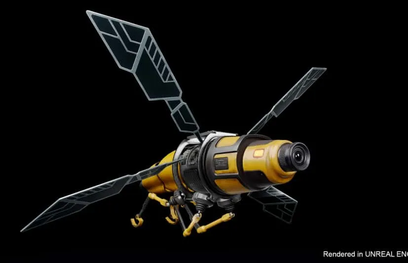 角色“机器蜜蜂”的低多边形绑定和动画模型
